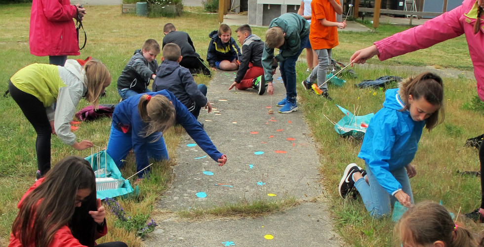 Les enfants de l'école élémentaire de Beaurainville sont devenus les jardiniers d'un jour en créant leur potager de couleurs. En utilisant des légumes ( patates, carottes...) comme tampons, ils ont imprimé sur les carrées d'asphalte qui jonchent le terrain des Argousiers, des formes multicolores: une production foisonnante qui se récolte... avec les yeux!